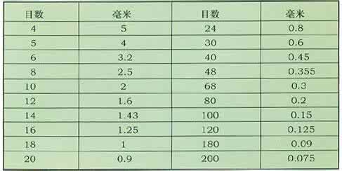 颗粒目数的定义 (简单定义见概述)目数越大,说明物料粒度越细;目数越小,说明物料粒度越大。筛分粒度就是颗粒可以通过筛网的筛孔尺寸,以1英寸(25.4mm)宽度的筛网内的筛孔数表示,因而称之为目数。 各国标准筛的规格不尽相同,常用的泰勒制是以每英寸长的孔数为筛号,称为目。例如100目的筛子表示每英寸筛网上有100个筛孔。 筛孔尺寸与标准目数对应 筛孔尺寸:4.75mm 标准目数:4目 筛孔尺寸:3.90mm 标准...