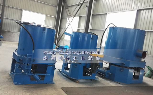 離心選礦機(jī)的給礦方式是從側(cè)邊集中給礦,也有利于礦粒群的松散。