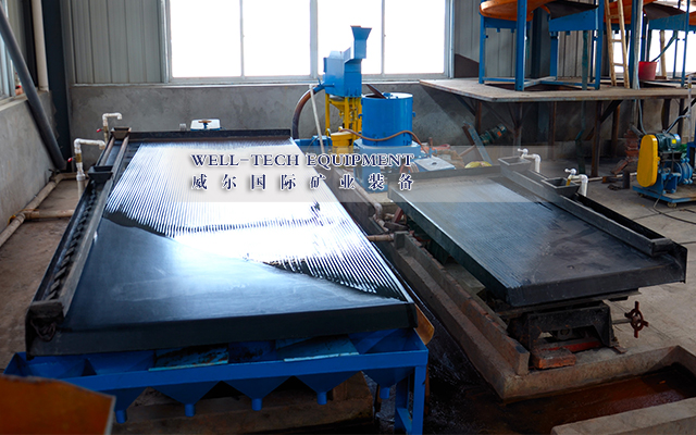 2、重選:黑鎢礦重選通常采用多級跳汰、多層搖床、中礦再磨的重選流程。細碎后合格礦經(jīng)過振動篩分級后進行多級跳汰,產(chǎn)出跳汰重選毛砂,粗粒級跳汰尾礦進入磨機再磨,細粒級跳汰尾砂經(jīng)過分級機后進入多級搖床選別,產(chǎn)出搖床重選毛砂,搖床尾礦排入尾礦庫,搖床中礦返回再磨再選,跳汰和搖床的重選毛砂進入精選作業(yè)。