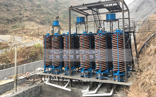 鉭鈮原生礦多采用階段磨礦、多段重選。通常在磨礦回路中增設(shè)選別設(shè)備,以提早回收單體礦物。鉭鈮砂礦由于礦物單體解離比較好,一般不需要破碎和磨礦,入選前先進(jìn)行篩選,除去塊石和卵石,然后進(jìn)行粗選。粗晶鉭鐵礦-鈮鐵礦采用跳汰機(jī)或螺旋選礦機(jī)(含旋轉(zhuǎn)螺旋溜槽)粗選,粗選精礦采用搖床精選;細(xì)晶鉭鐵礦-鈮鐵礦采用螺旋溜槽或搖床粗選,粗選精礦采用搖床精選;鉭鈮礦泥采用離心選礦機(jī)或多層搖床粗選,粗選精礦采用皮帶溜槽或槽流皮帶溜槽結(jié)合礦泥搖床精選。此流程的特點(diǎn)是投資少、上馬快、成本低、環(huán)境污染少。但對礦泥選別效率低。
