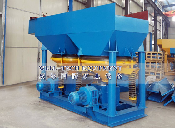 粗級(jí)別的進(jìn)行跳汰,細(xì)級(jí)別的送搖床選。設(shè)備為鋸齒波跳汰機(jī)和6-S型搖床。