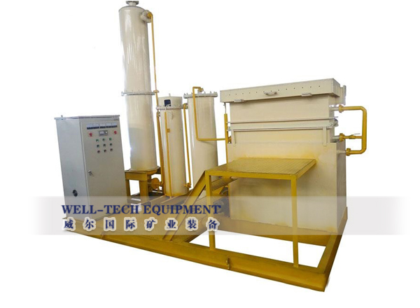 解吸电解成套设备是金矿氰化炭浆法提金工艺流程的关键设备,由电加热器、解吸柱、热交换器、电解槽、泵等部分组成的整...