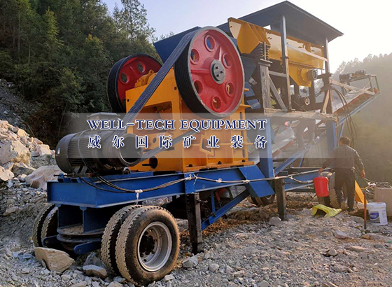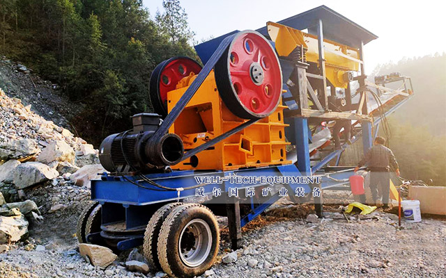 鄂式破碎機破碎礦石的過程,加入到顎式破碎機破碎腔(由固定顎板和可動顎板組成的空間)中的物料,由于動顎板作周期性往復擺動,當動顎板靠近固定顎板時,物料受到壓碎、劈裂和彎曲折斷的作用而被破碎。當動顎板離開固定顎板時,已碎到小于排礦口尺寸的物料,靠其自重從下部排礦口排出。位于破碎腔上部還未破碎到足夠小的物料,隨之下落到破碎腔的下部,再次受到顎板的作用而繼續(xù)被破碎。