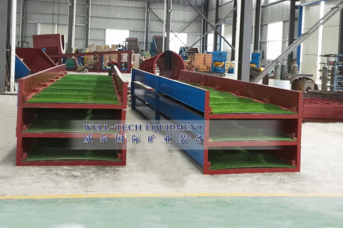 粘金溜槽是以前最受歡迎的選金設(shè)備之一,通常由溜槽體、溜槽格和粘金毯組成。粘金溜槽通常用于砂金選廠,廣泛地與滾筒篩組合一起使用可直接回收黃金。