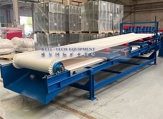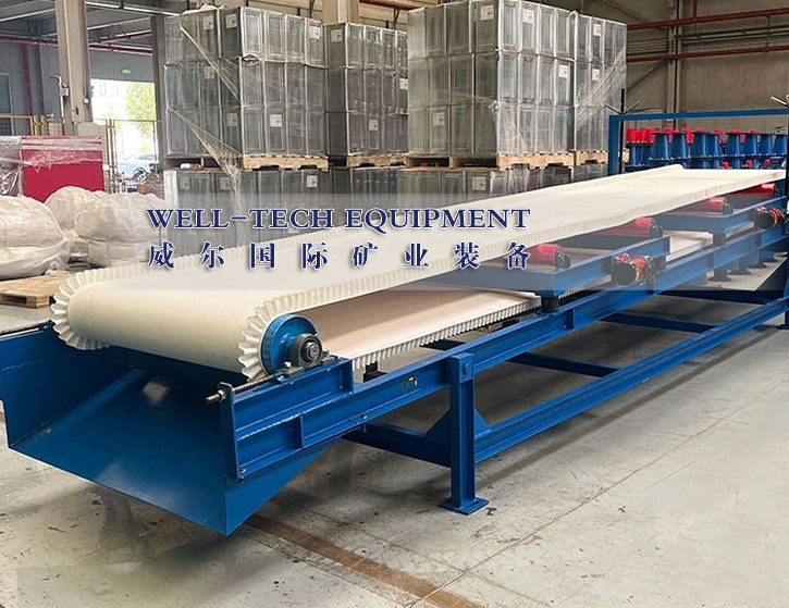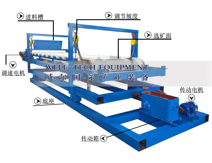 毛毯機(懸振式毛毯機)又稱布溝機,是一種比較獨特的重選設備,懸振毛毯機是在傳統(tǒng)毛毯機上增加了往復運動傳動裝置,相比傳統(tǒng)布溝機對微細顆粒物料的回收更為有效,解決了床層板結問題,使重礦物更容易分層、沉降,大大提升了回收效率。特別適用于 80 目以上鎢、錫、金、銅 、鉛、鋅、鉻、鈦、鋯、稀土、金紅石、獨居石、鉭鈮、石榴石、石英高嶺土等產(chǎn)品的回收與再提純,還可用于選礦廠超標尾砂、廢棄尾礦的再提取利用,同時也可用于磁鐵礦、次黃鐵礦和焙燒后的赤鐵礦、褐鐵礦、菱鐵礦里的鎢、錫、銅等稀有金屬的回收。
