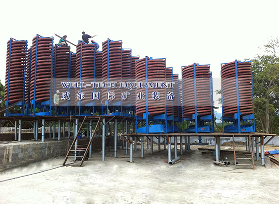 玻璃鋼螺旋溜槽是綜合了螺旋選礦機、玻璃鋼螺旋溜槽、搖床、離心選礦機的特點,經(jīng)冶金部組織有關科研,設計、高校和礦廠等單位進行鑒定通過,認為該設備性能優(yōu)良,選別指標先進,并獲得冶金部科技研究成果獎,現(xiàn)已在有色、黑色金屬礦山大量應用。本設備適用于分選粒度0.3-0.02 毫米細料的鐵礦、鈦鐵礦、鉻鐵礦、硫鐵礦、鋯英石、金紅石、獨居石、磷乙礦、鎢礦、錫礦、鉭礦、鈮礦以及具有比重差異的其他有色金屬、稀有金屬和非金屬礦物體。