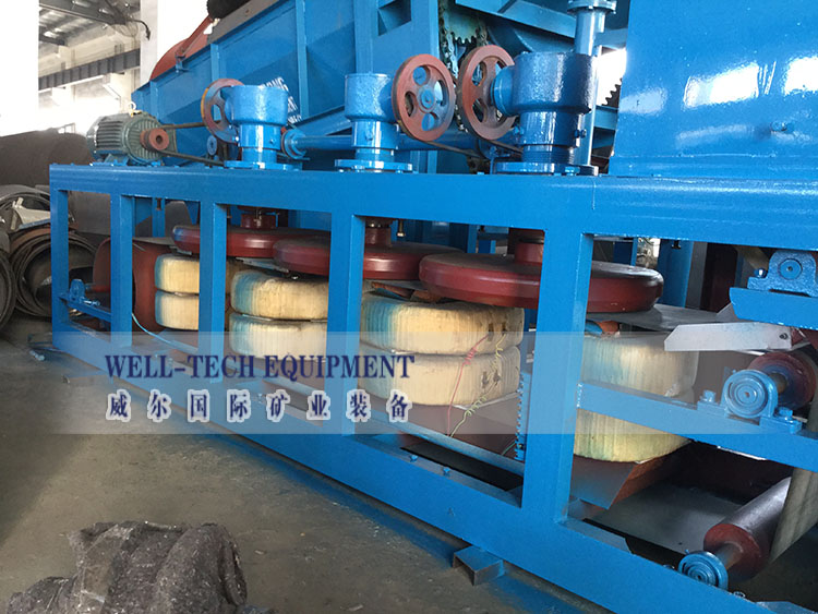 ③處理磁性強(qiáng)的礦物和精選作用軟弱的磁場(chǎng),處理磁性弱的礦物和掃選作業(yè)用較強(qiáng)的磁場(chǎng).