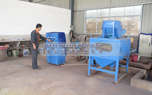 非導(dǎo)電礦物由于放電很慢,在其表面還保著得到的負(fù)電荷,這些電荷在靜電場中產(chǎn)生靜電吸力大于礦物的重力及離心力,使礦物繼續(xù)吸附在滾筒表面,直至被滾筒后面的刷子刷下為止,這樣礦物就達到了按導(dǎo)電性異時行分選的目的。