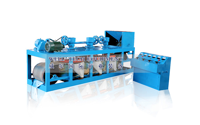 單盤磁選機(jī)CQP-885型是干式強(qiáng)磁磁選機(jī),磁系采用工業(yè)電工純鐵和高強(qiáng)度絲包銅線制造,單盤磁選機(jī)其特點(diǎn)是:磁場(chǎng)強(qiáng)、處理量大,適合于錳礦、鈦鐵礦、高錫鎢礦、金紅石、石榴子石、鉭鈮礦、鉻鐵礦、稀土礦、獨(dú)居石、鋯英礦、非金屬除鐵和弱磁性礦物的分選和精選。