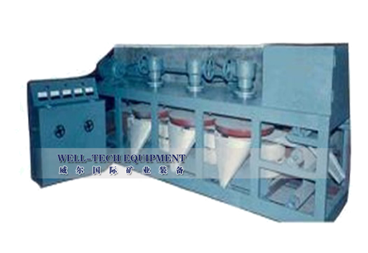 885單盤磁選機(jī)做了四點(diǎn)改進(jìn);一是加大給礦部漏斗寬度,使礦帶加寬,從而提高處理量;二是加大給礦部的小皮帶輪直徑,使傳動(dòng)給 礦更均勻;三是改進(jìn)了兩側(cè)門結(jié)構(gòu),加寬觀察窗口,使調(diào)整間隙工作更加方便,直觀;四是進(jìn)一步提高機(jī)罩的制造質(zhì)量,使外觀更加美觀.