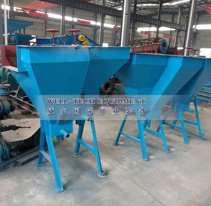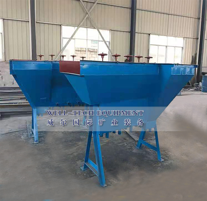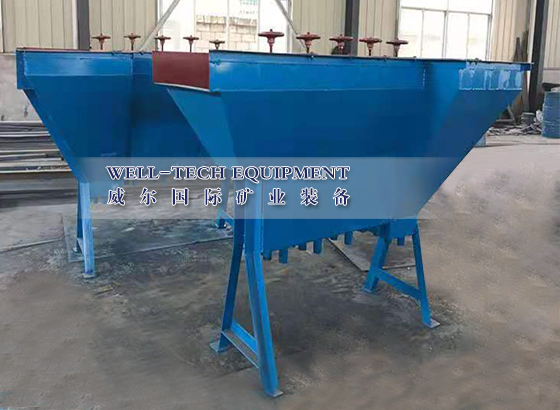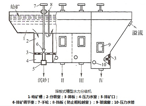 篩板式水力分級機(jī)的優(yōu)點(diǎn)是構(gòu)造簡單,不需要?jiǎng)恿?。與機(jī)械攪拌式水力分級機(jī)比較,高度較小,便于配置。可以根據(jù)選廠處理能力的不同,制成四室、六室、八室等不同的規(guī)格。這種分級機(jī)在我國中小型鎢礦選礦廠應(yīng)用較多。