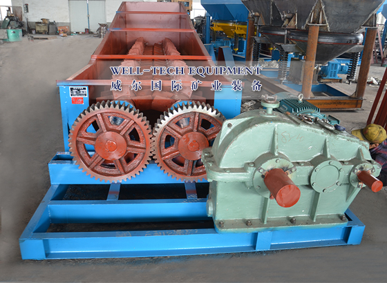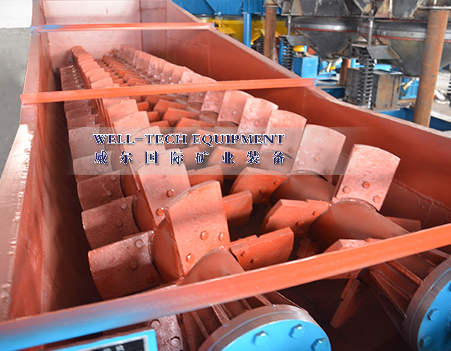 螺旋洗礦機用減速機帶動兩個螺旋攪拌軸以不同方向旋轉,進入槽體的礦物經葉片強力攪拌和清水沖洗,污水從槽尾溢流面排出,洗凈的礦物順著葉片傾角向上排出。
